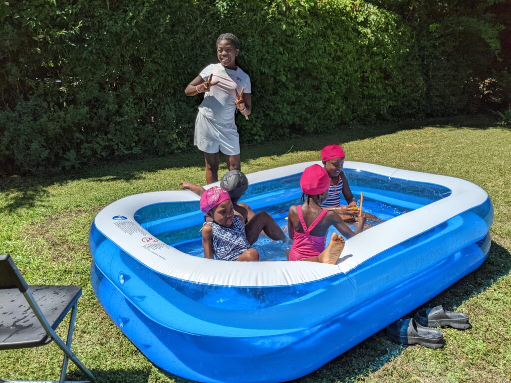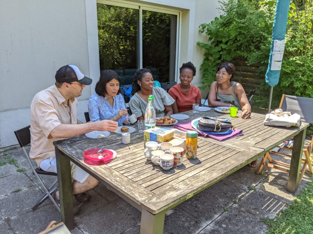 Un bel après-midi pour un déjeuner avec nos amis de l’église, de la nourriture, de la “natation”, du partage et des chants.