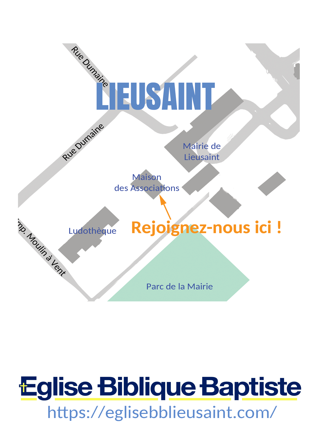 Tous les dimanches, au 5 Impasse du Moulin à Vent, 77127 Lieusaint, notre église multiculturelle se réunit pour découvrir Dieu.